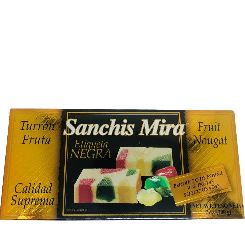 Spanish fruit nougat, supreme quality, Black Label. Sanchis Mira has been producing turrones for over a 100 years. Turron is a favorite among Cubans due to our close Spanish heritage and is never absent from the holiday tables, specially Noche Buena that always falls on December 24th
